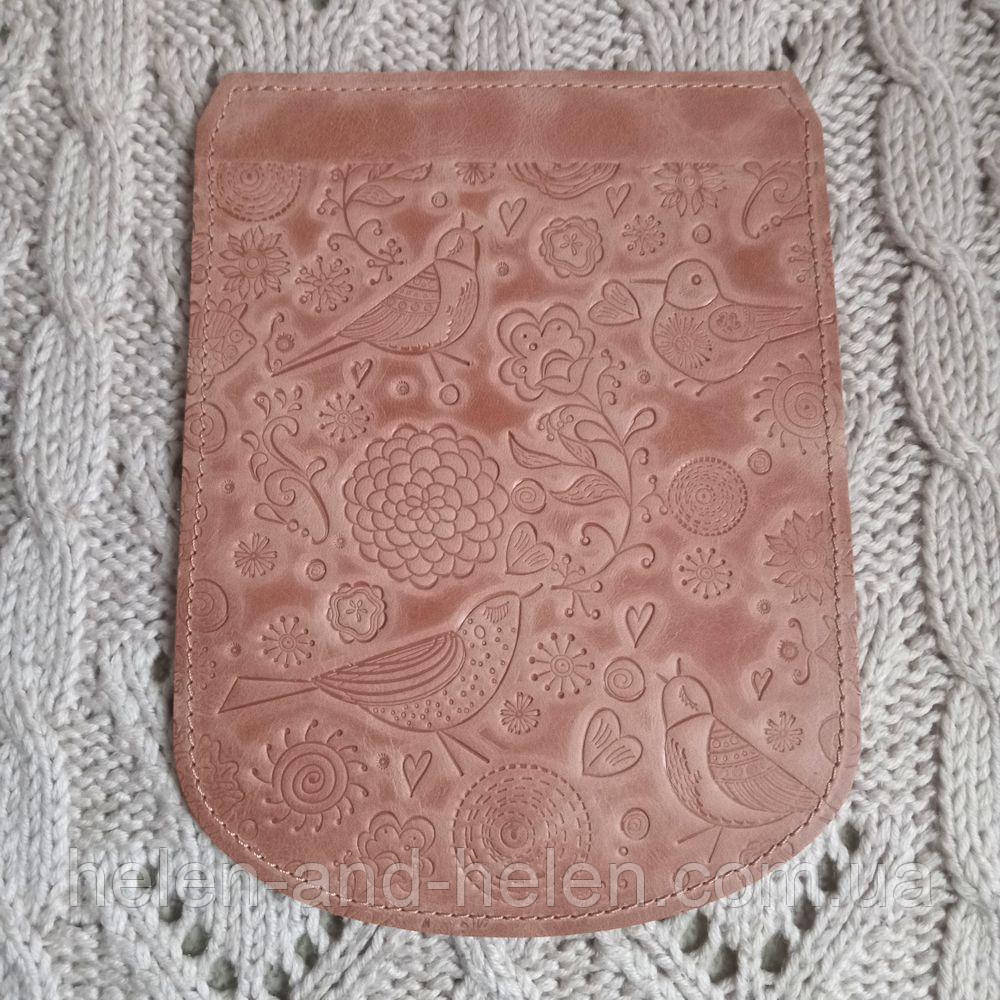 Клапан для рюкзака з натуральної шкіри кольору "Кориця" з тисненням "Пташки". Серія "Люкс".
