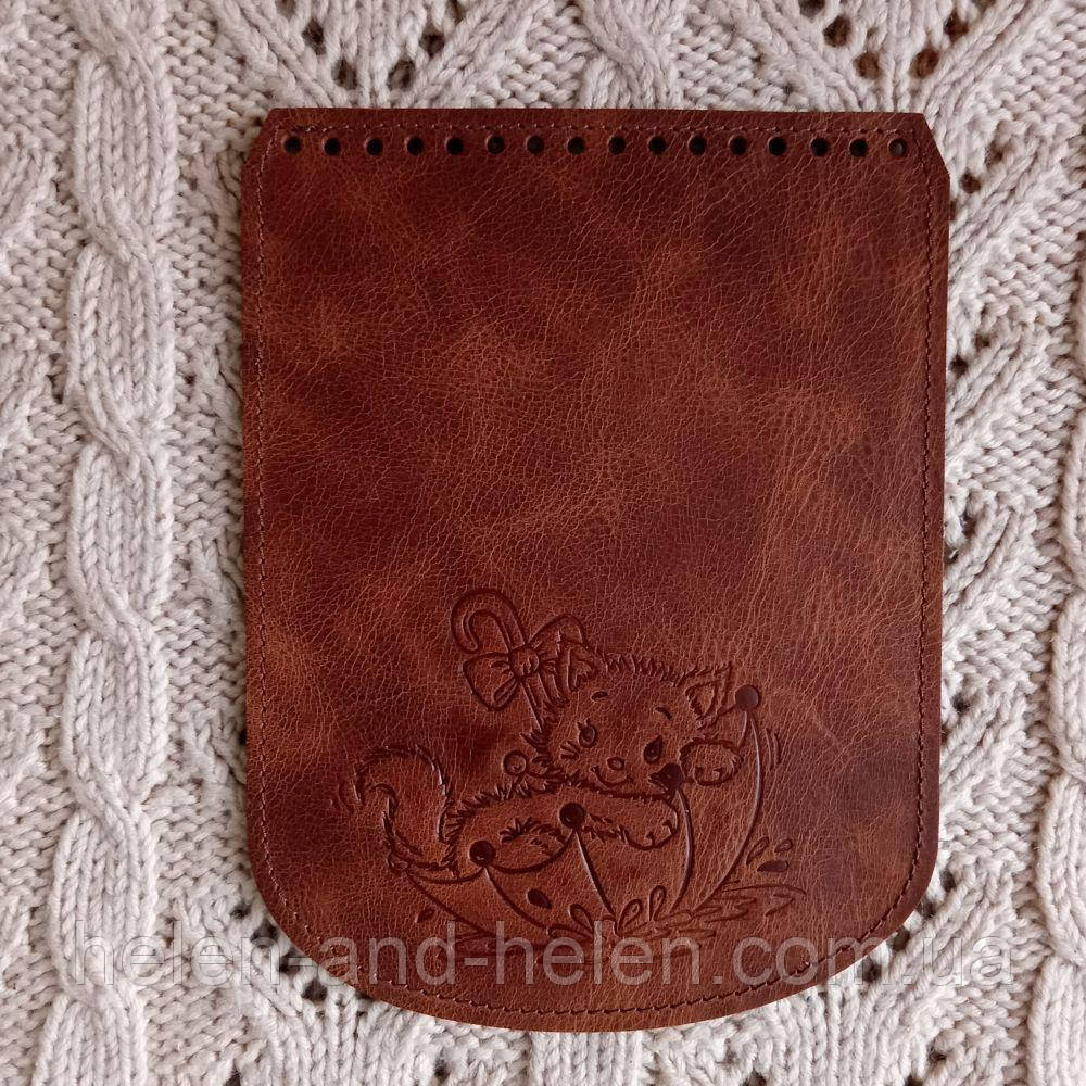 Клапан для рюкзака з натуральної шкіри коньячного кольору з тисненням "Парасолька". Серія "Люкс".